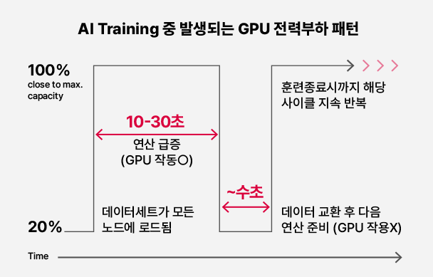 - 계통전력은 빠르게 변하는 GPU 부하 패턴을 따라갈 수 없음