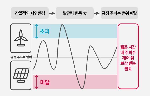 - 급격한 부하 변동은 일시적 주파수 변동 현상을 야기함