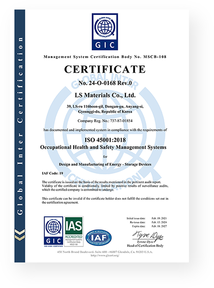 LS머트리얼즈는 안전보건 시스템의 지속적 개선과 법규 준수, 사전 예방 중심의 관리, 성숙한 참여 문화 조성, 그리고 투명한 정보 공개를 통해 모든 사업 영역에서 책임 있는 안전보건 경영을 실천합니다.