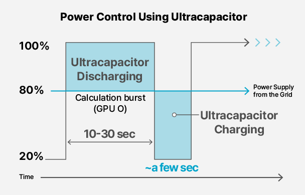 - With fast charging/discharging high power characteristics compared to Li-ion Battery, it reliably manages the power load of GPU clusters