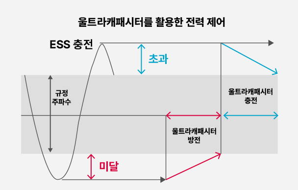 - Li-ion 배터리 대비 빠른 충방전 및 고출력 특성을 통해 국가 전력망의 부하 변화를 안정적으로 대응할 수 있음